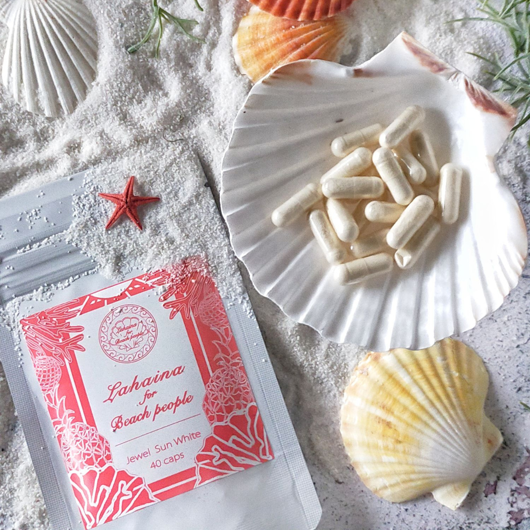『Lahaina for Beach People』ブランドの紫外線対策・美肌ケアに特化した美容サプリメント「ジュエル・サンホワイト」は、体の中から輝くような透明感にアプローチします。 サーフィンのパフォーマンスなどを高めたいときにも、水素と酵母抽出物、マルチビタミン、植物性のプラセンタとセラミドを配合した美容サプリメントです。