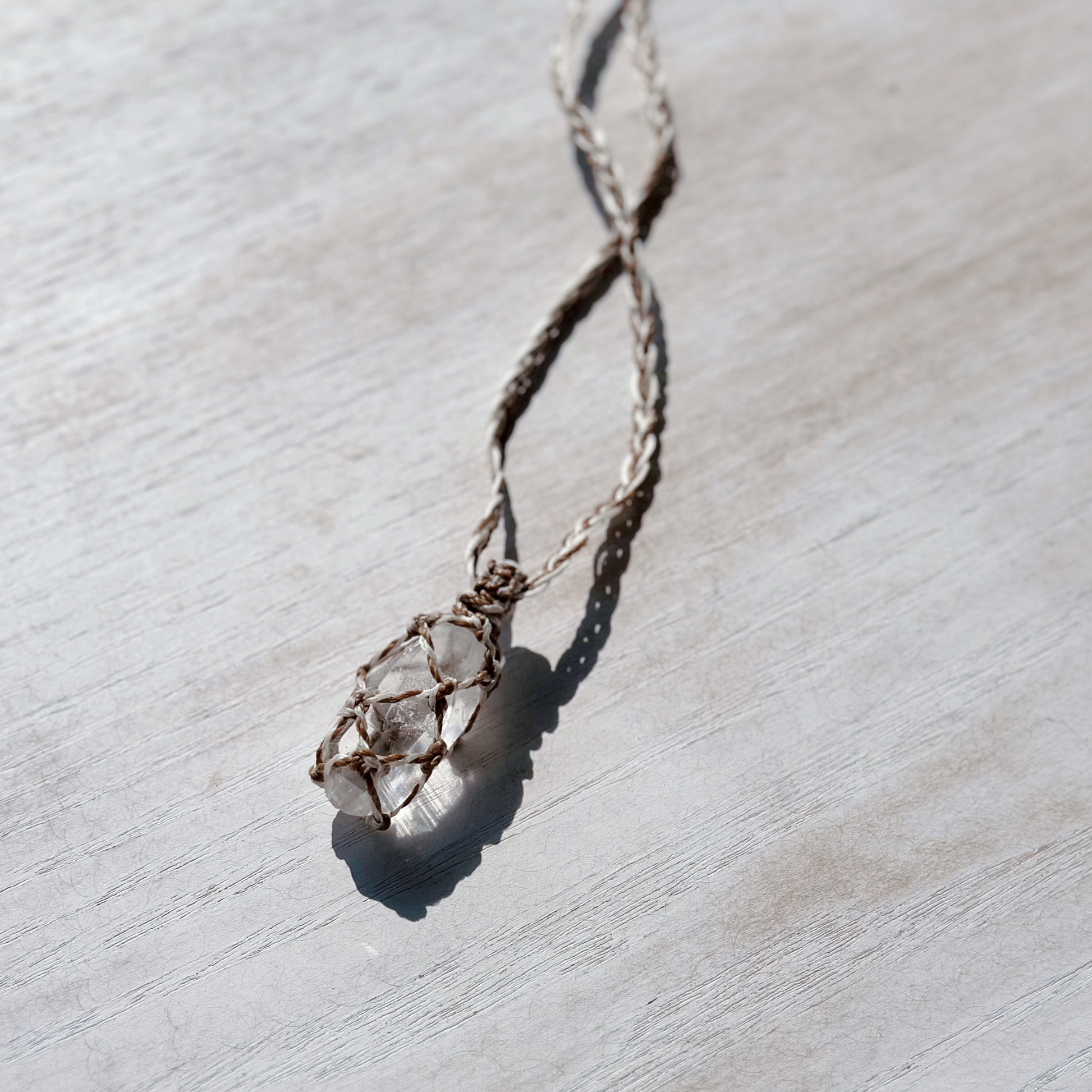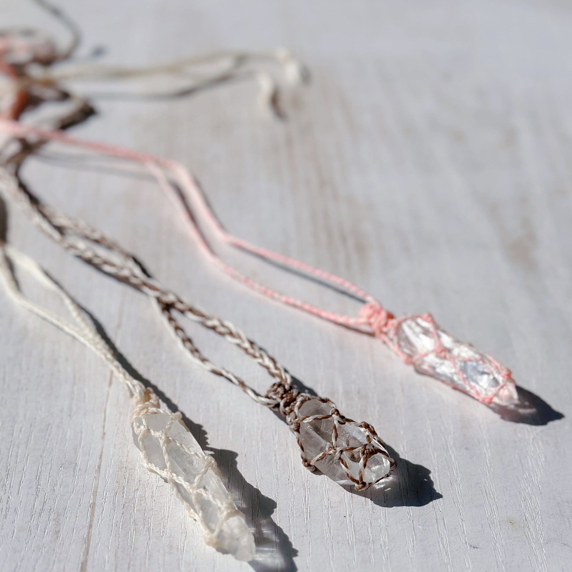 毎日、クリスタルボウルの音色で浄化されている水晶をマクラメコードで包んでペンダントにしました❤️
