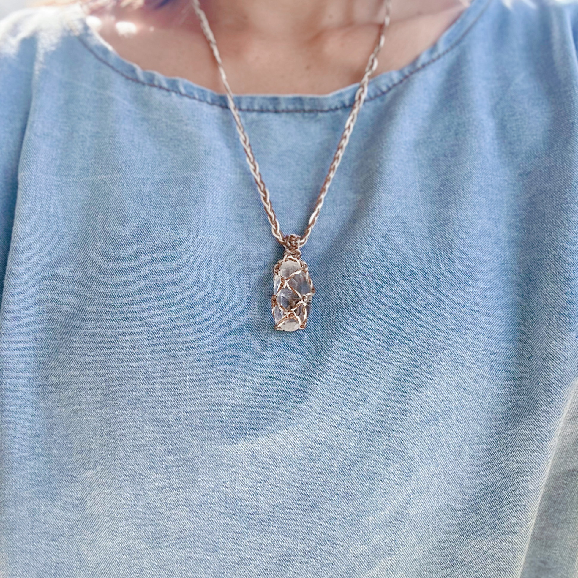 世界に一つあなたを守るマクラメ水晶ネックレス✨ブラウン