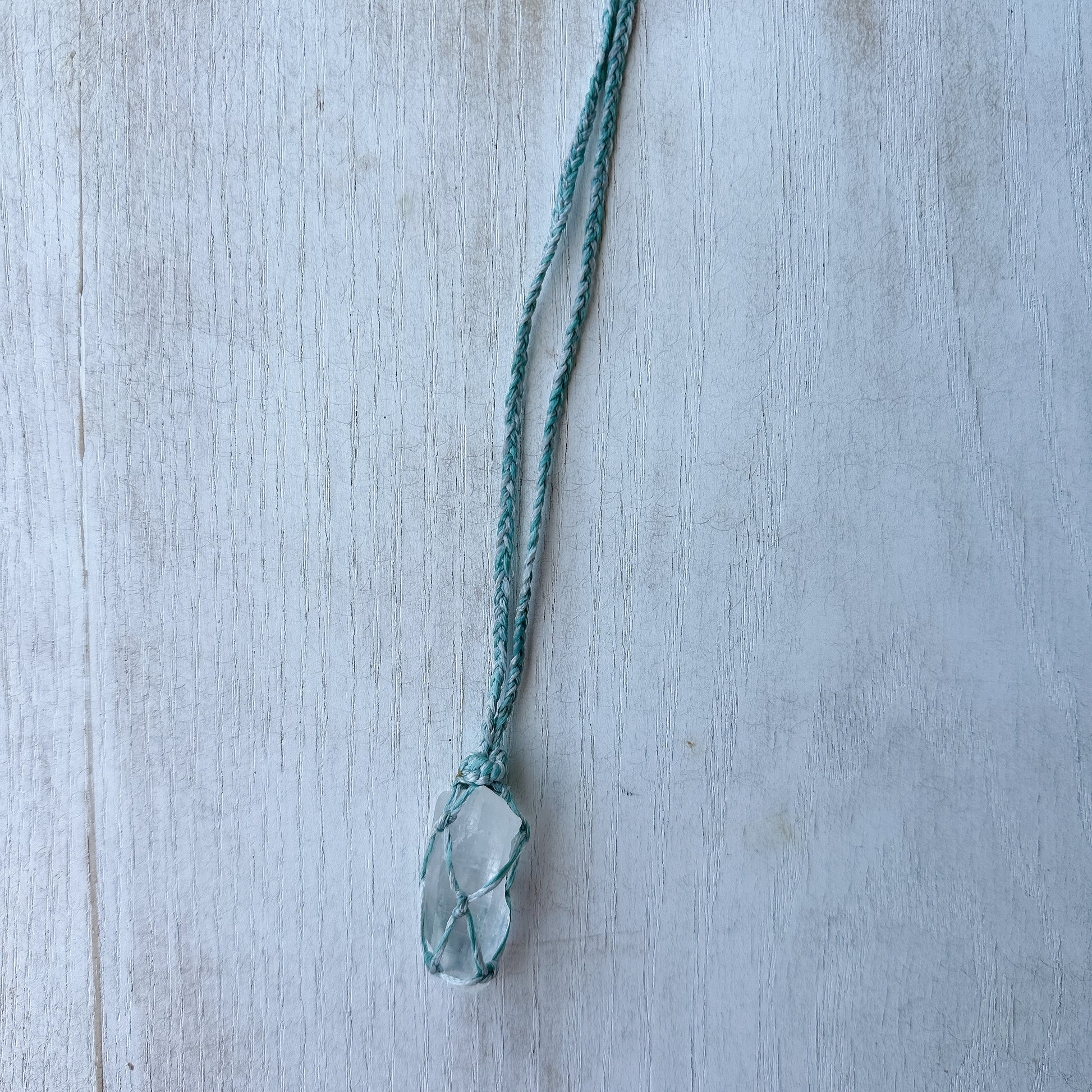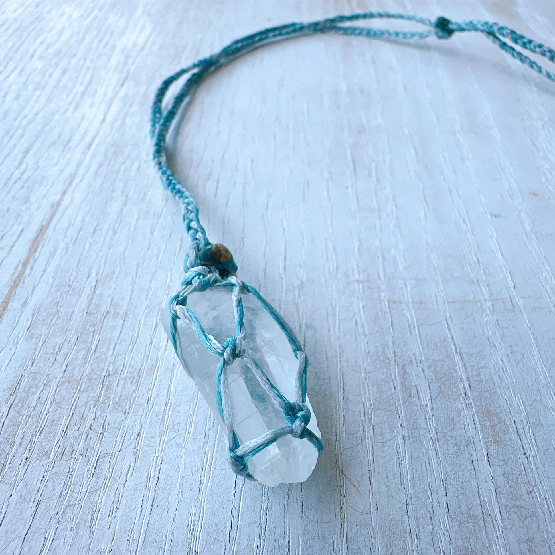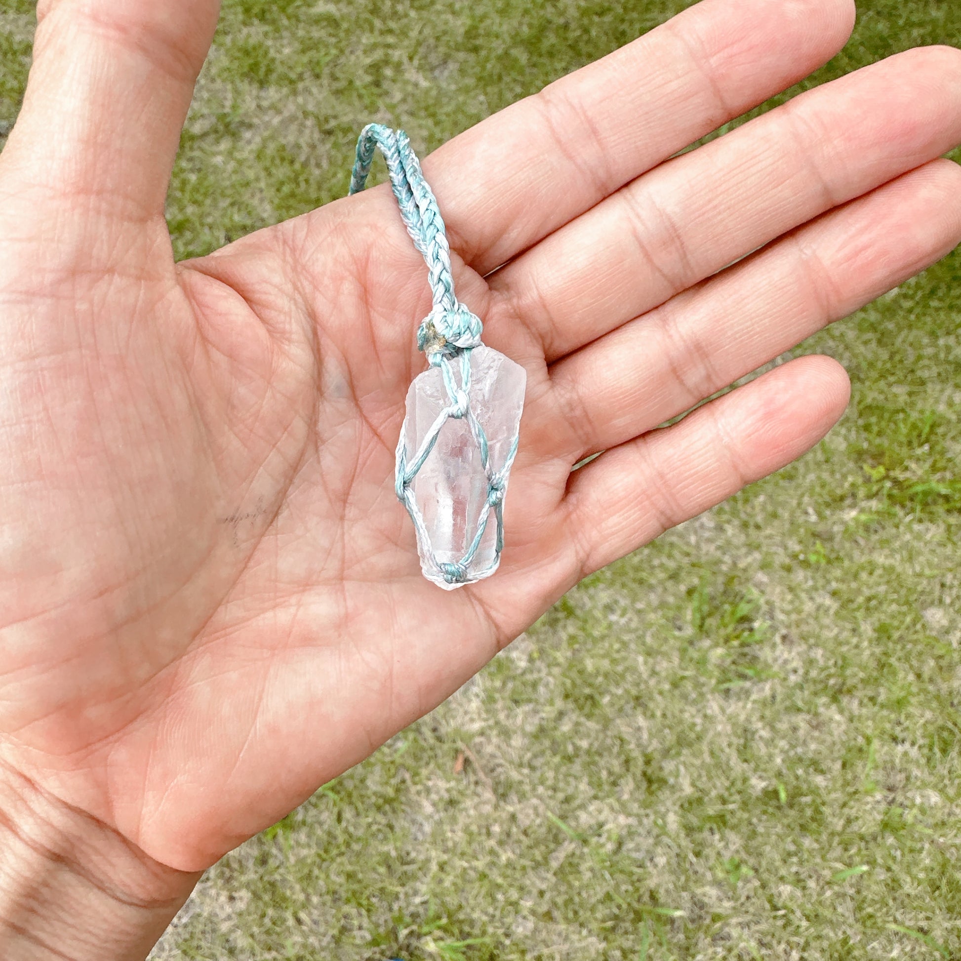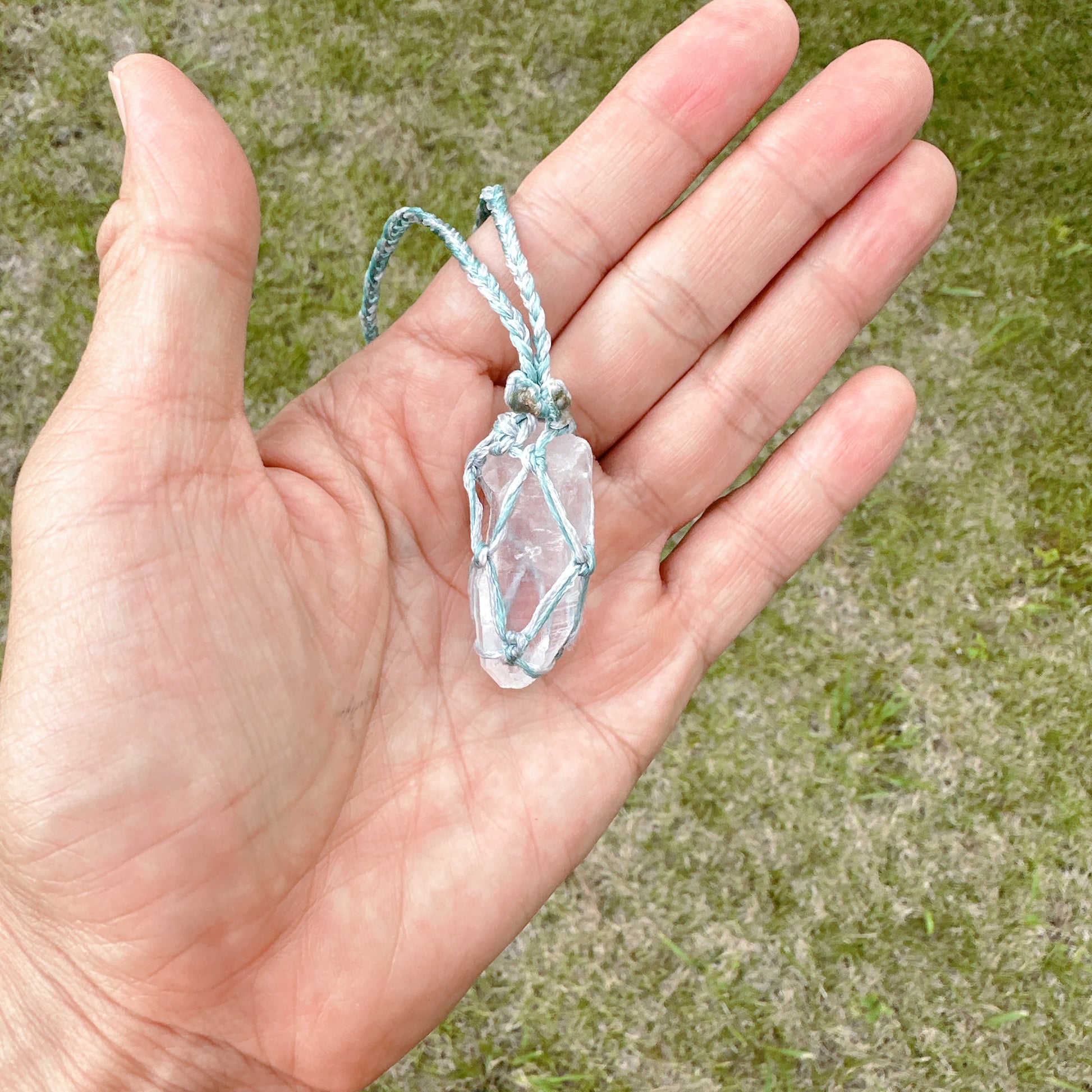 毎日、クリスタルボウルの音色で浄化されている水晶をマクラメコードで包んでペンダントにしました❤️