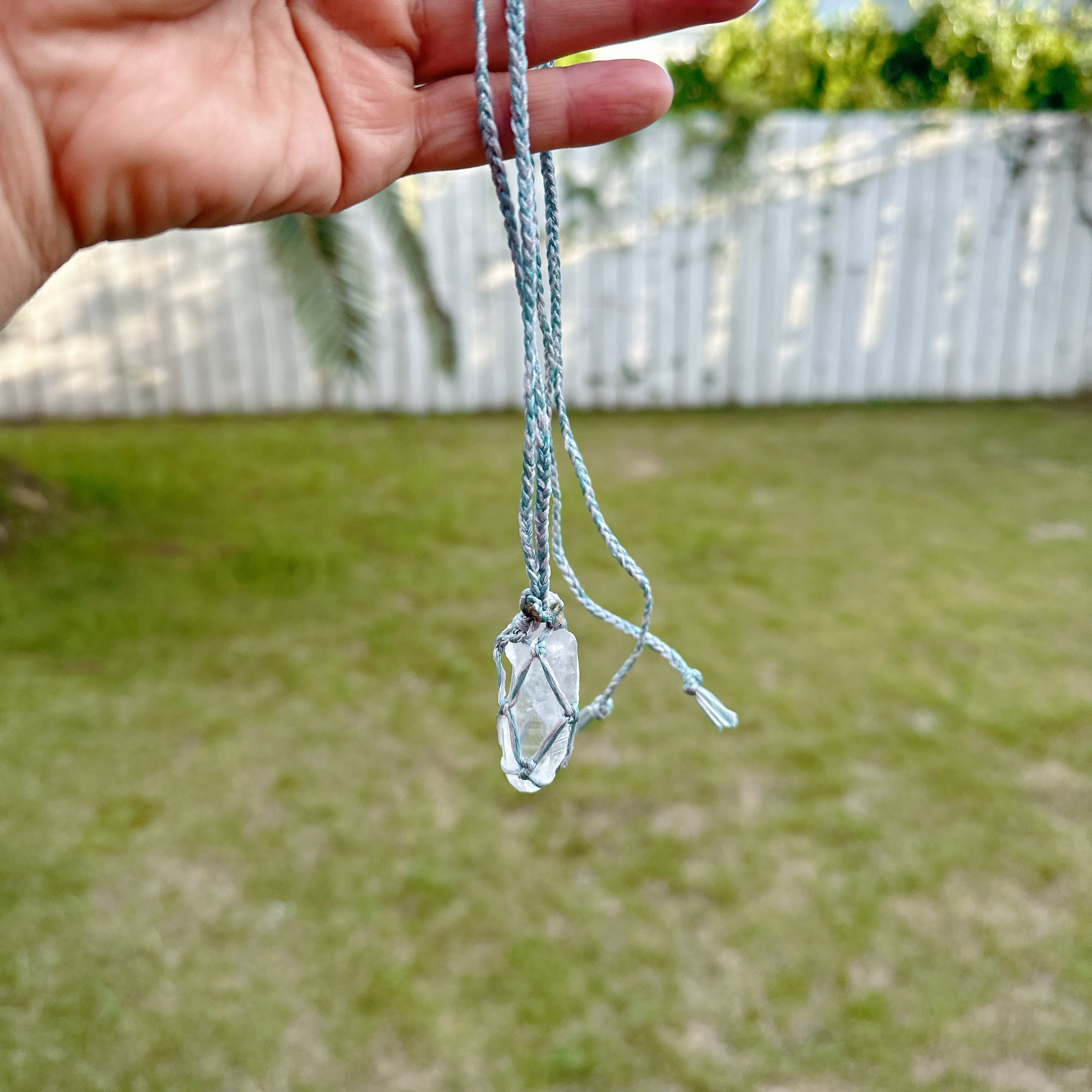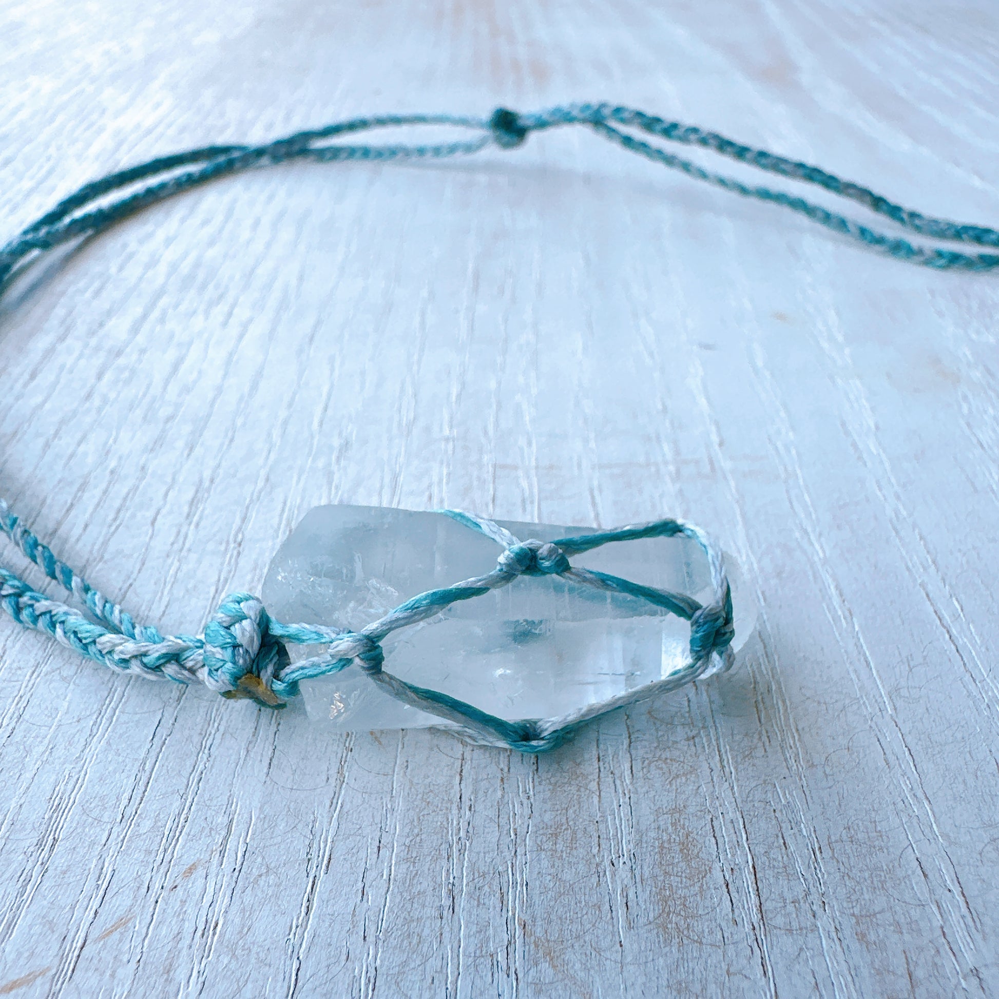 世界に一つあなたを守るマクラメ水晶ネックレス✨ブルー