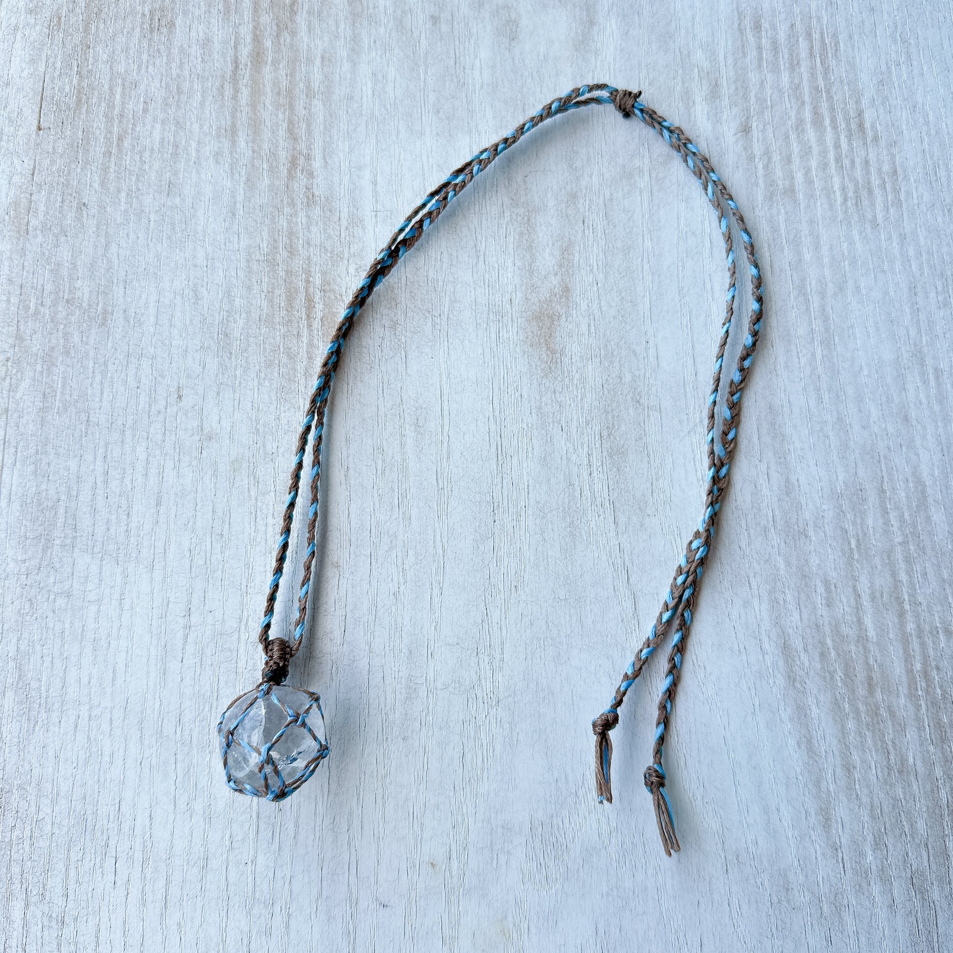 毎日、クリスタルボウルの音色で浄化されている水晶をマクラメコードで包んでペンダントにしました❤️