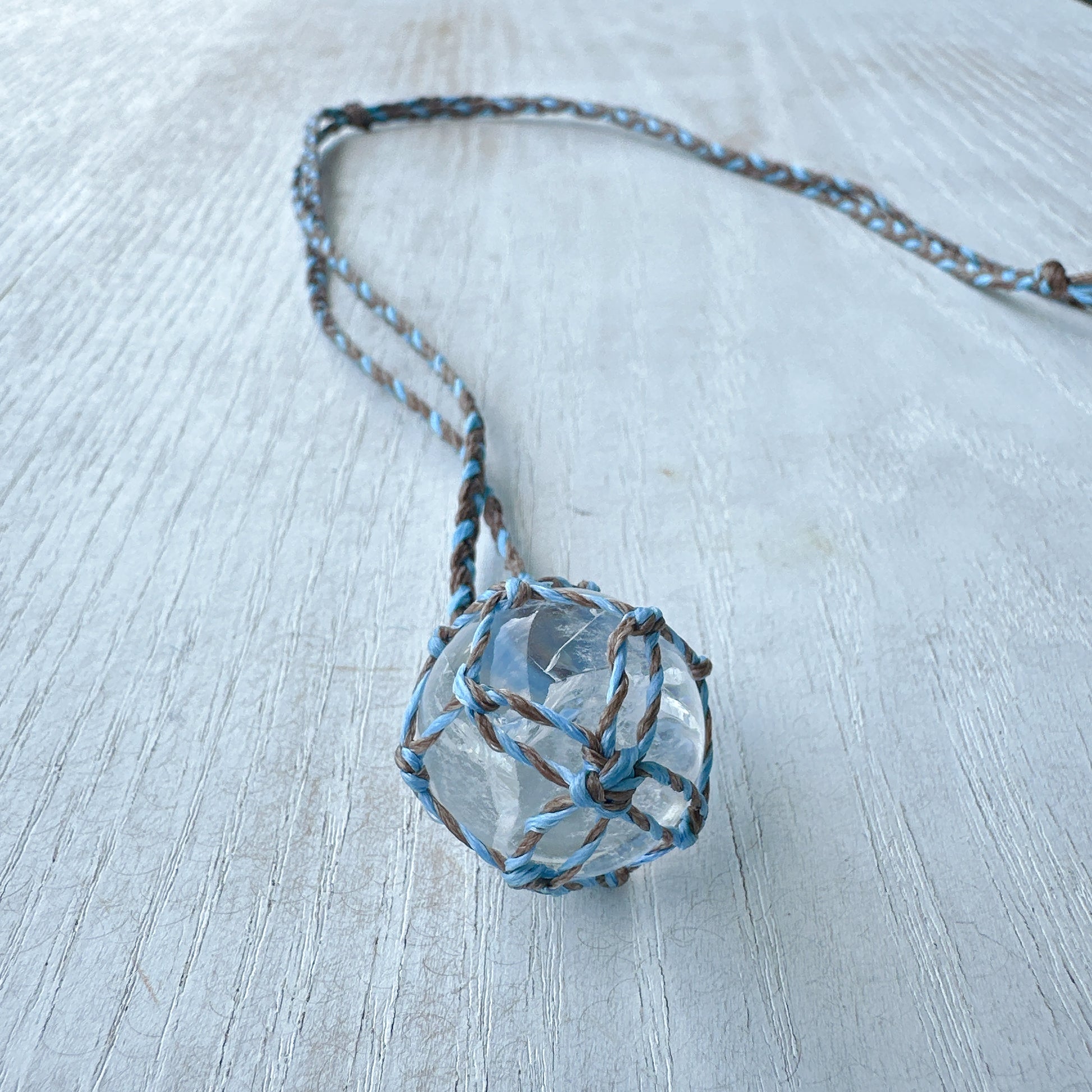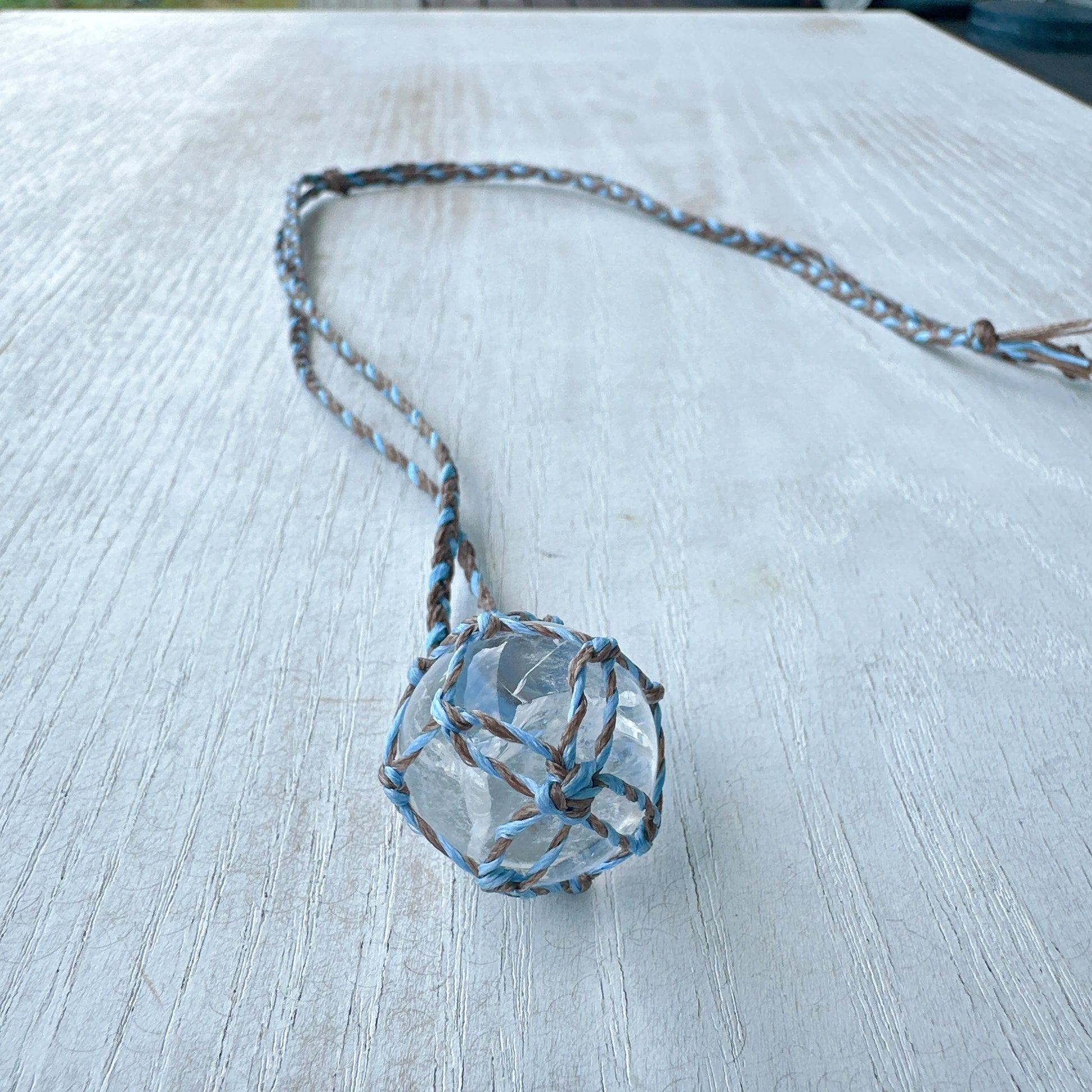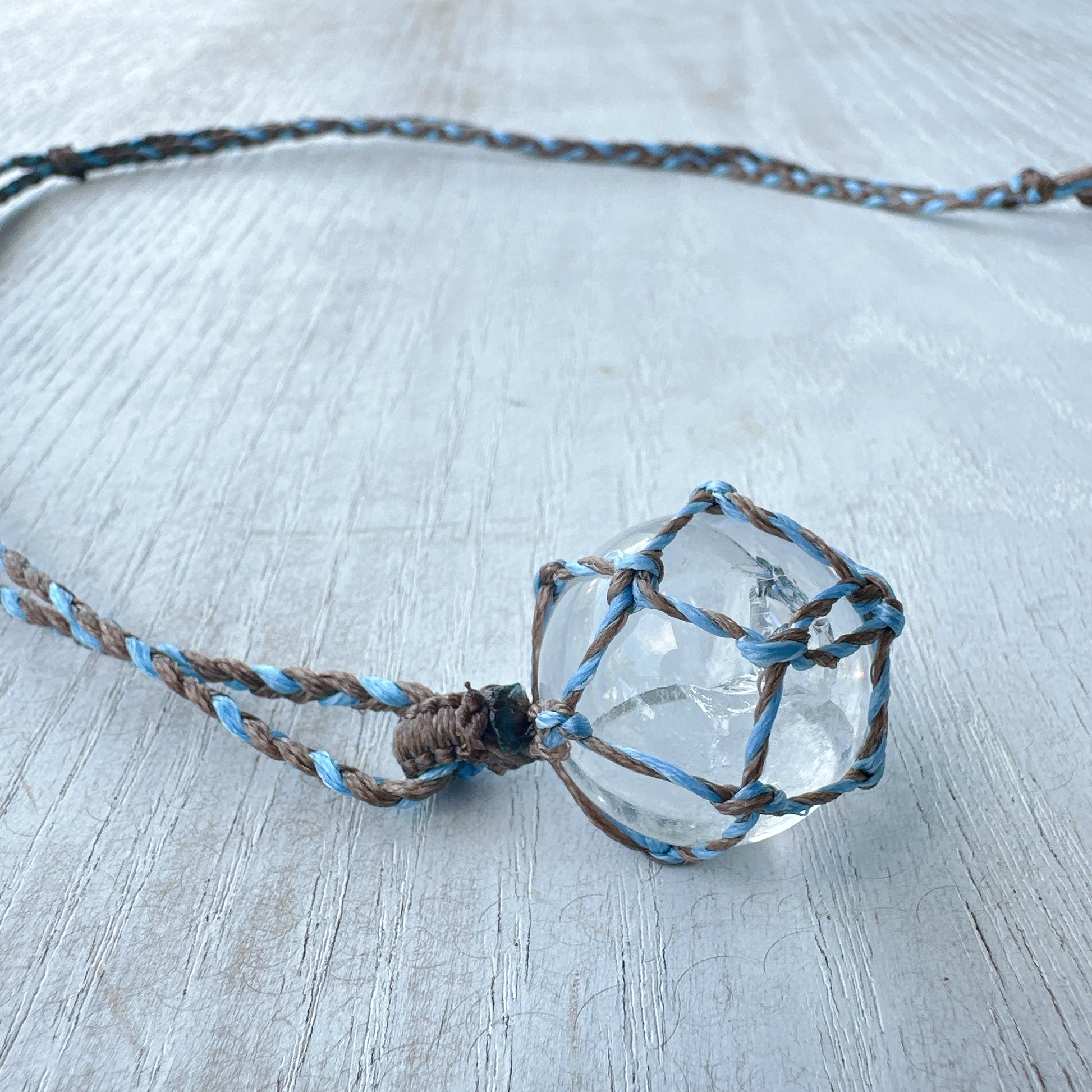 世界に一つあなたを守るマクラメ丸玉水晶ネックレス✨ブルー